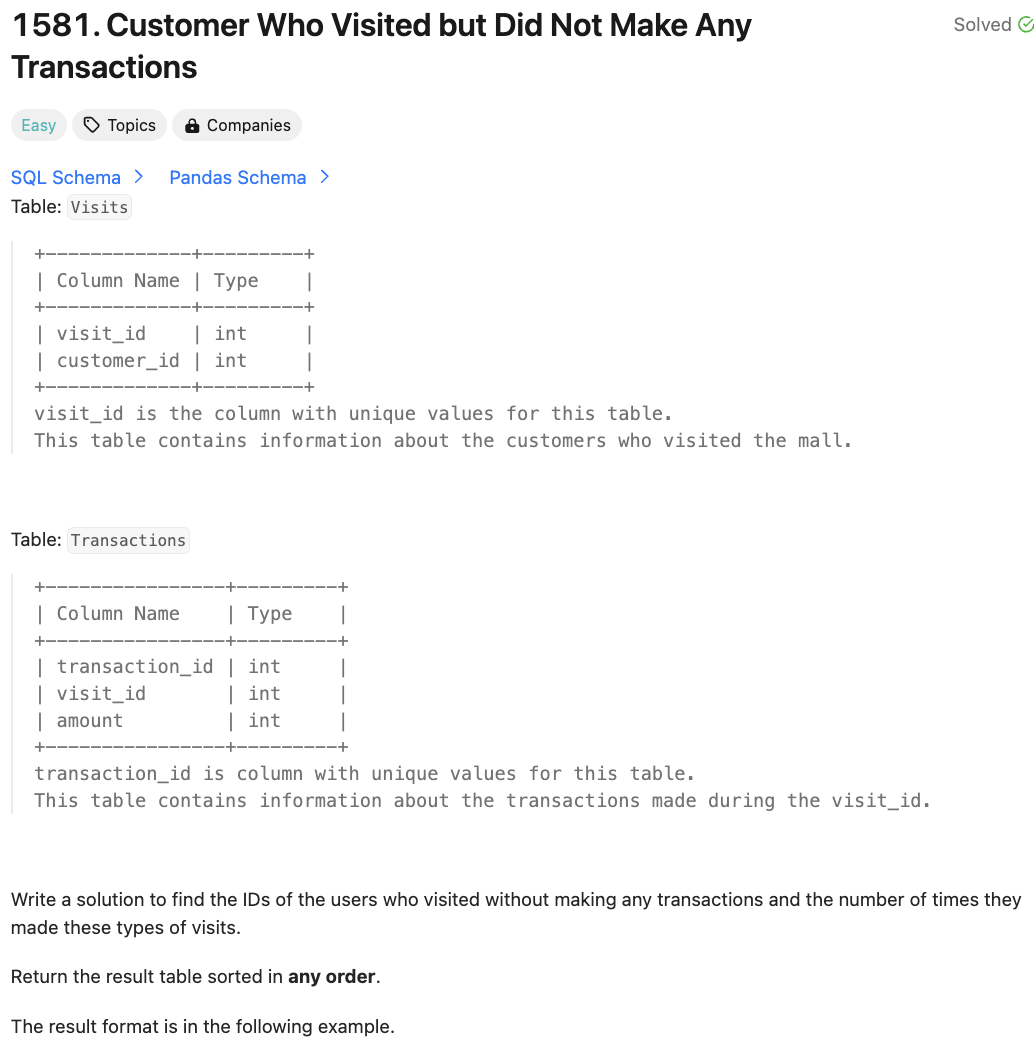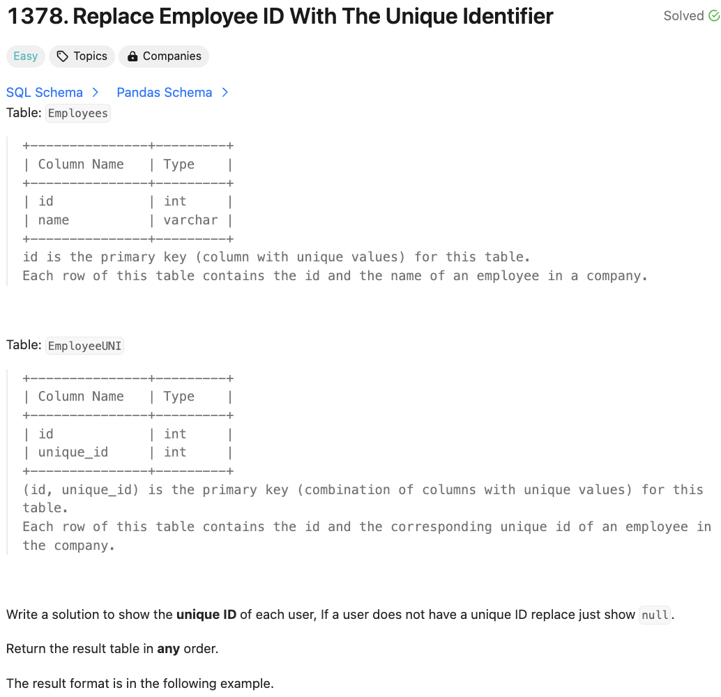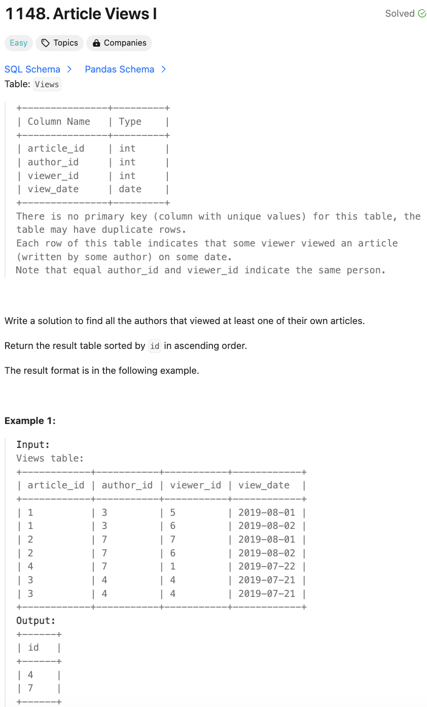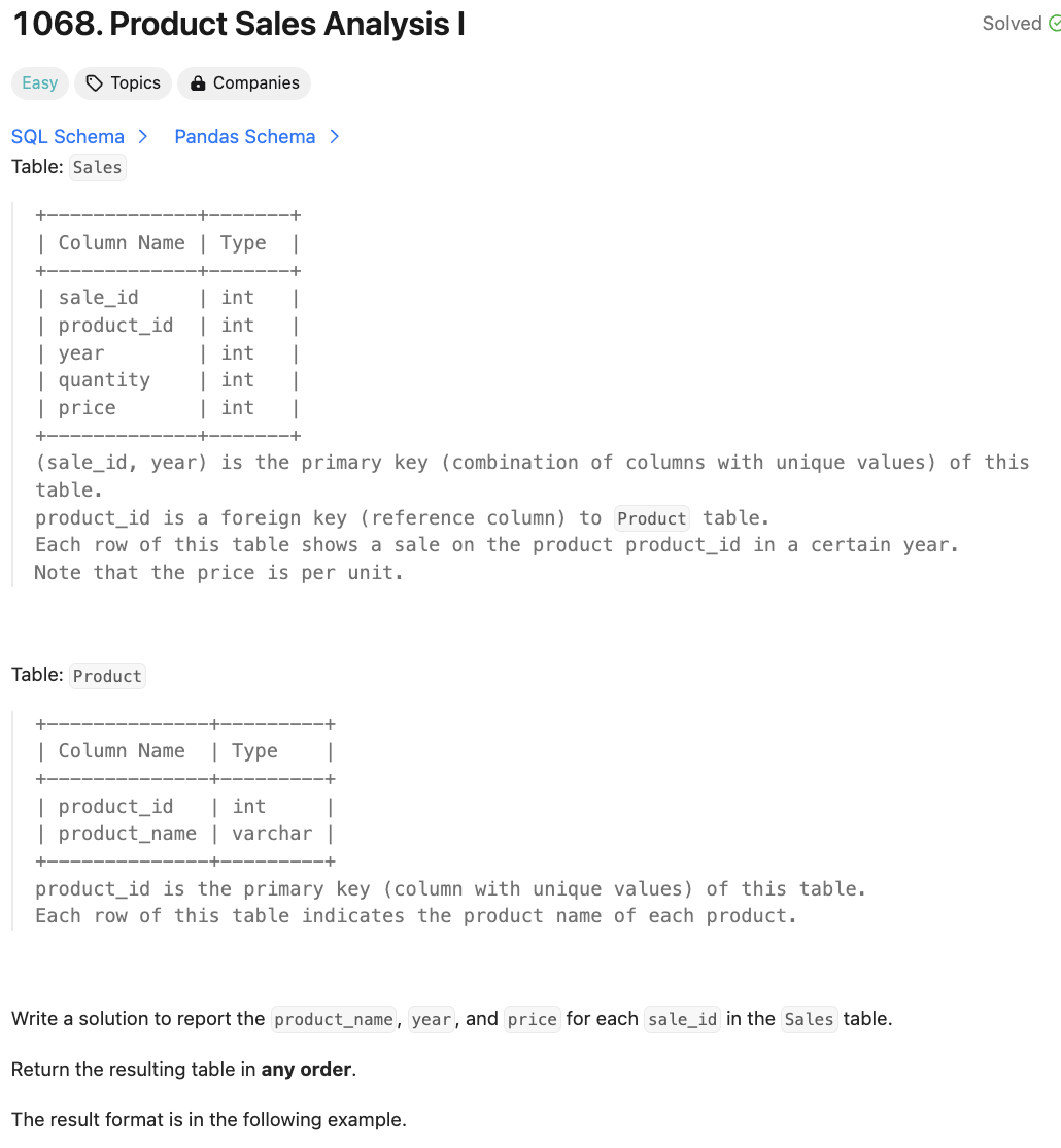 [SQL50] 197. Rising Temperature (JOIN)SELECT A.idFROM Weather A LEFT JOIN (SELECT id, LAG(recordDate, 1) OVER(ORDER BY recordDate) AS yesterday, LAG(temperature, 1) OVER(ORDER BY recordDate) AS prev_temp FROM Weather) B ON A.id = B.idWHERE temperature > B.prev_temp AND B.yesterday = recordDate - 1;LAG이전 행의 값을 가져올 수 있다. SELECT t, val, LAG(val) AS 'lag'FROM seriesO..