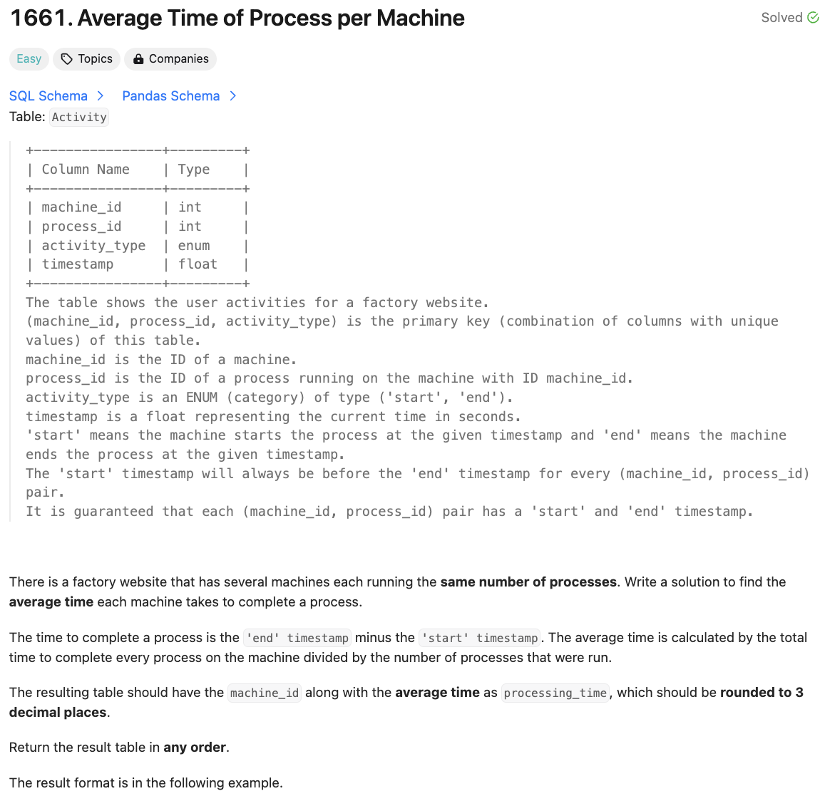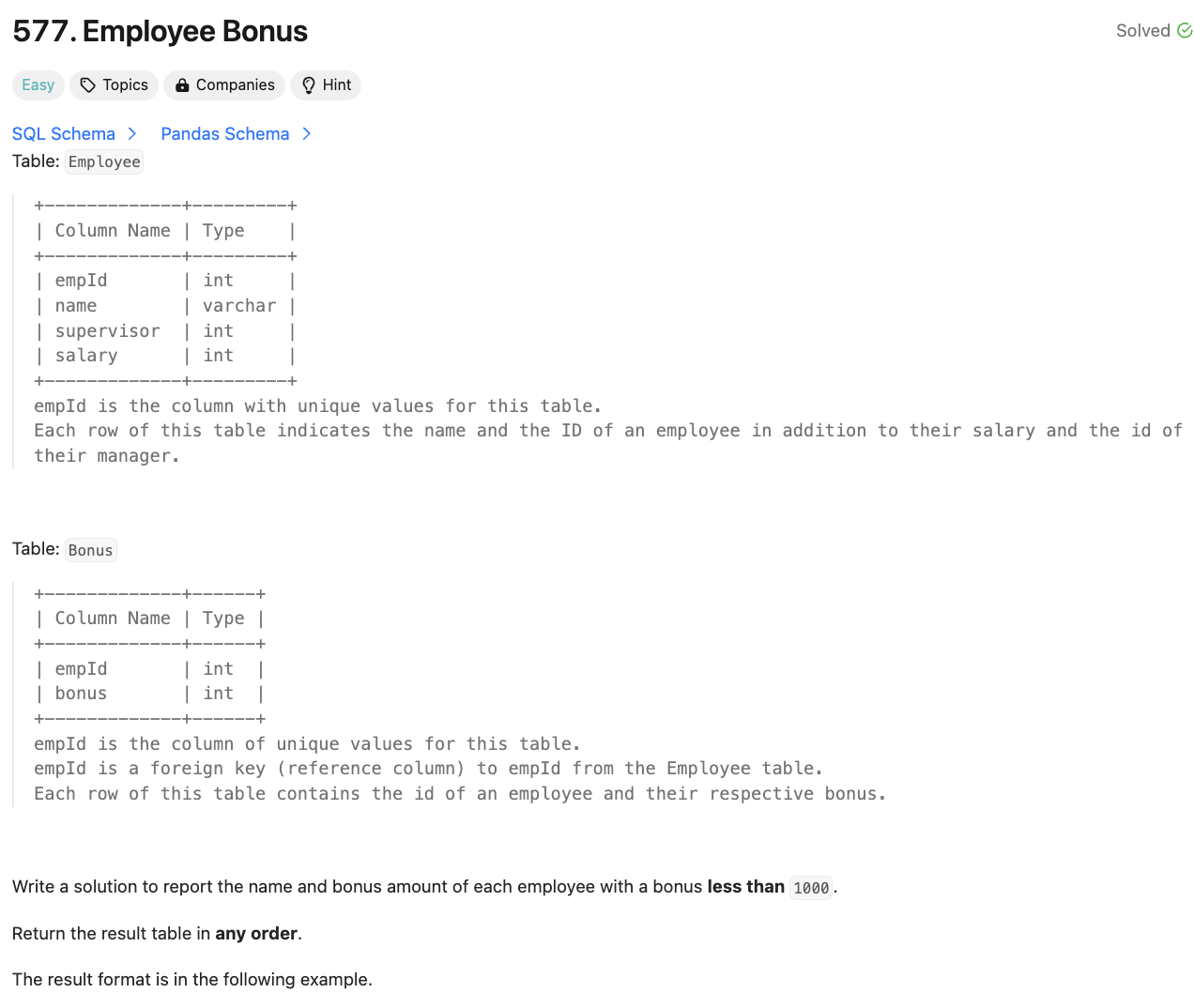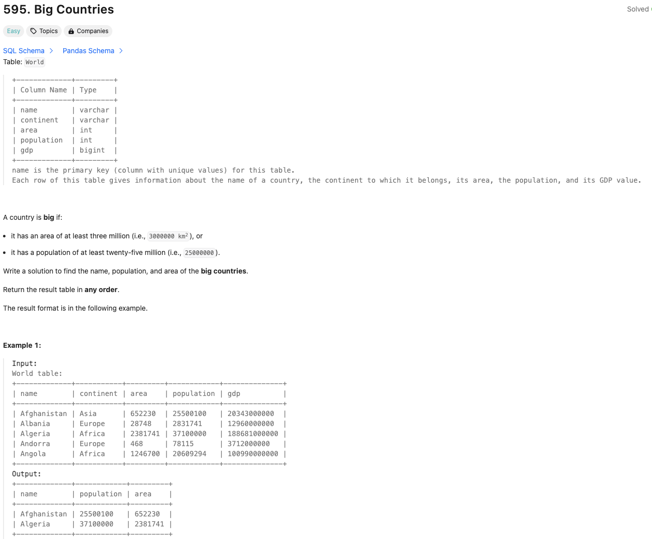 [SQL50] 197. Rising Temperature (JOIN)SELECT A.idFROM Weather A LEFT JOIN (SELECT id, LAG(recordDate, 1) OVER(ORDER BY recordDate) AS yesterday, LAG(temperature, 1) OVER(ORDER BY recordDate) AS prev_temp FROM Weather) B ON A.id = B.idWHERE temperature > B.prev_temp AND B.yesterday = recordDate - 1;LAG이전 행의 값을 가져올 수 있다. SELECT t, val, LAG(val) AS 'lag'FROM seriesO..